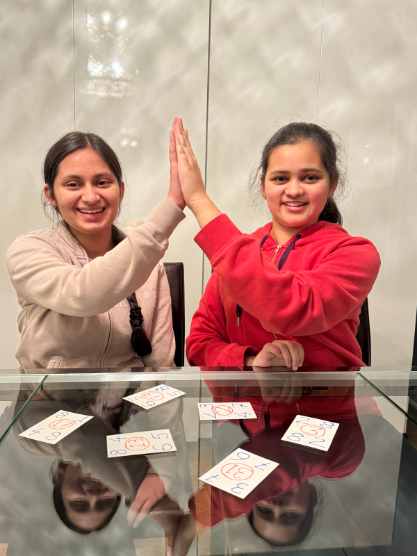 Aria, now a freshman in college, and Oma, now a senior in high school, came up with the idea of PRIMES and PIVOT, card games.